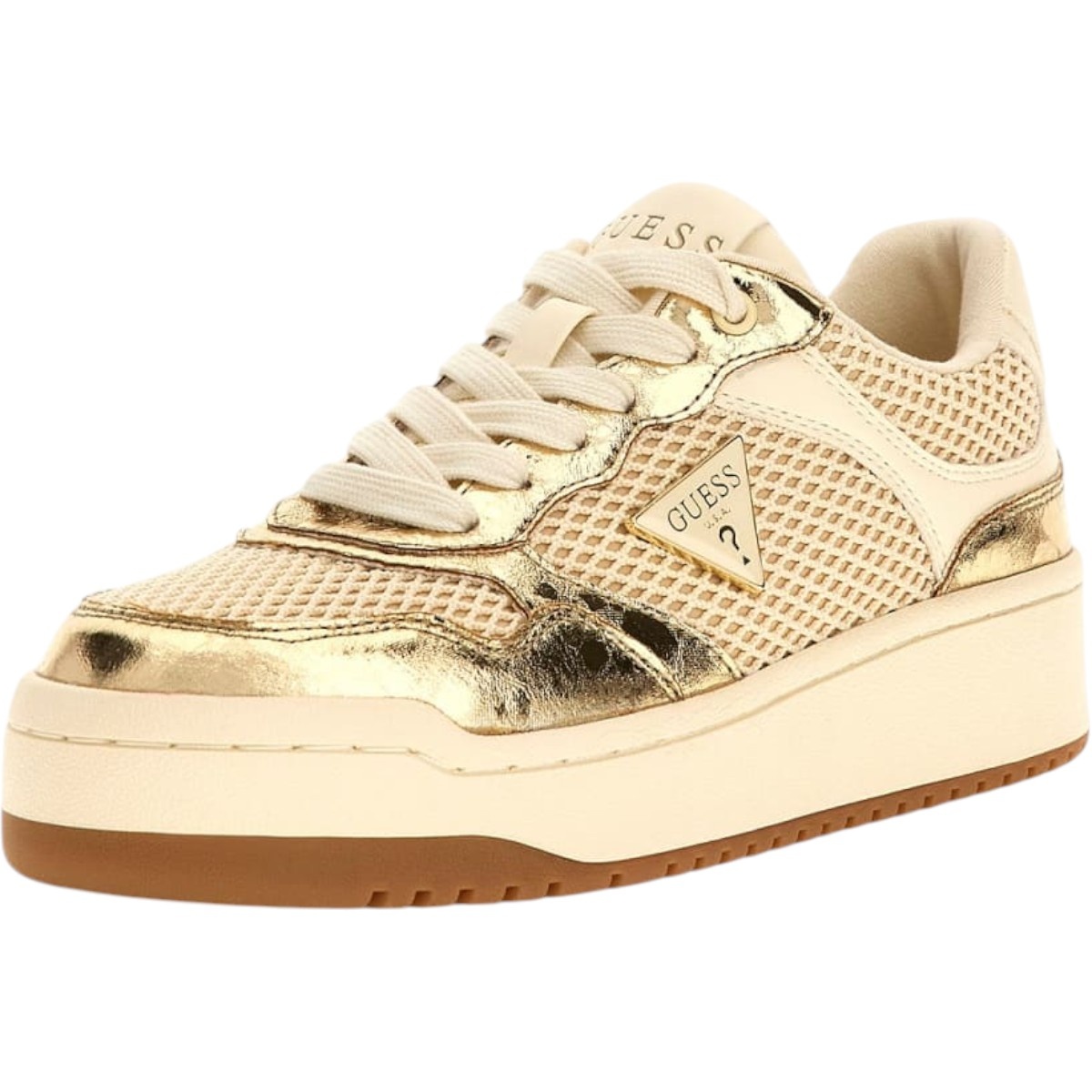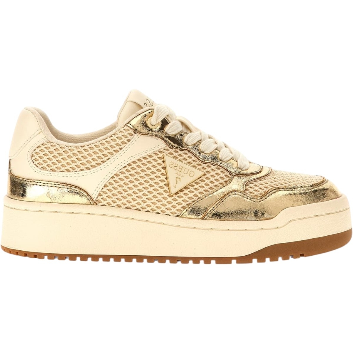 Guess Dames Sneakers in de kleur Goud. Dit item komt uit de Lente/Zomer 2026 collectie en is gemaakt van Leer. • Pasvorm: Normaal• Kleur: Goud• Seizoen: Lente/Zomer 2026